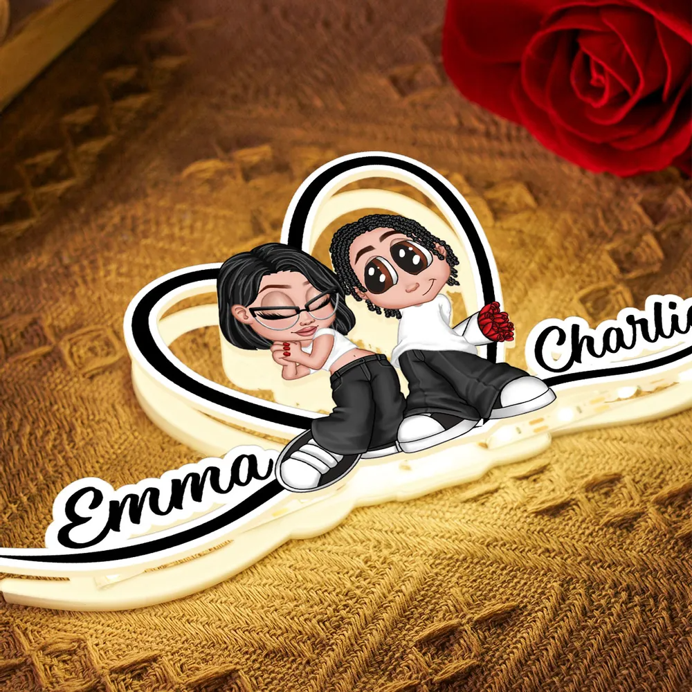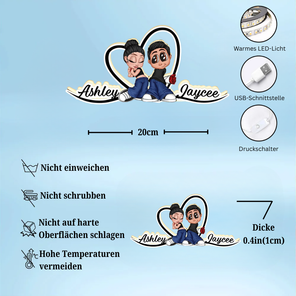 Y2K-Paar und Herz Personalisierte Lichtbox mit Namen Geschenk für Paar/LGBT-Paar