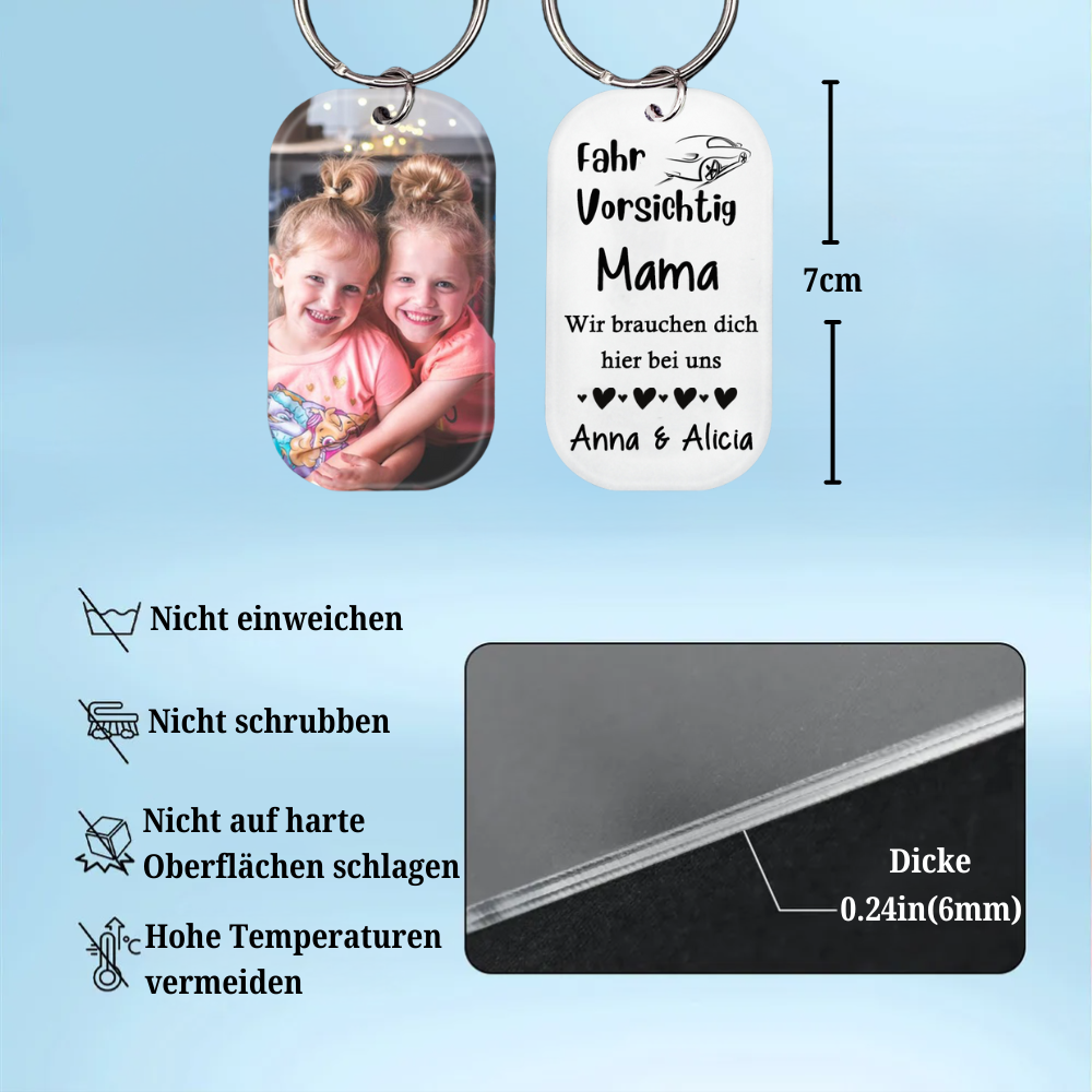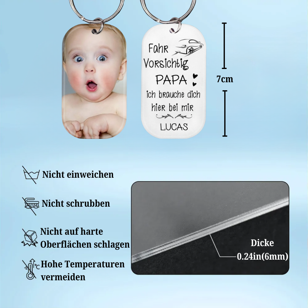 Acryl Foto Schlüsselanhänger- Fahr Vorsichtig Papa/Mama Vatertagsgeschenke Muttertagsgeschenke