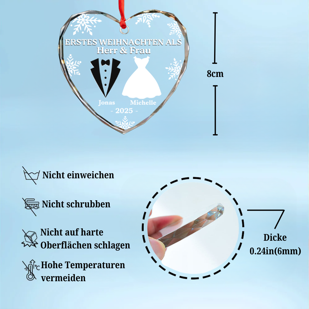Erstes Weihnachten als Ehepaar-Personalisierter Glasanhänger Christbaumschmuck