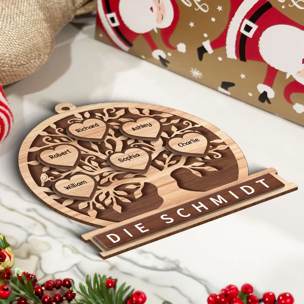 Familienbaum- Personalisierter Holzanhänger in 2 Lagen Christbaumschmuck