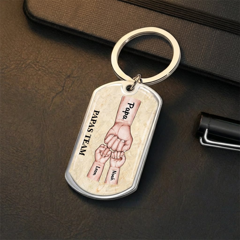 Fausstoß Foto-Edelstahl-Schlüsselanhänger mit Expoxidharz Geschenk für Papa