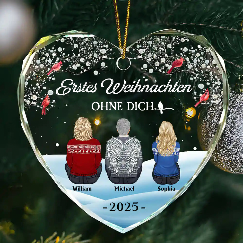 Glasornament in Herzform-Erstes Weihnachten ohne dich-Christbaumanhänger zur Trauer