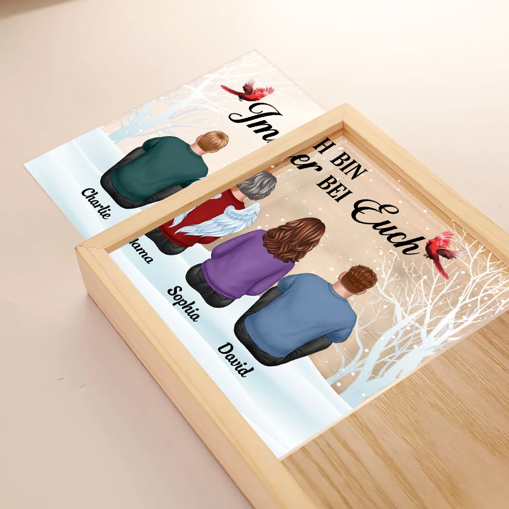 Immer bei dir - Personalisierte Holzrahmen-Lichtbox mit Familie Erinnerungsstück