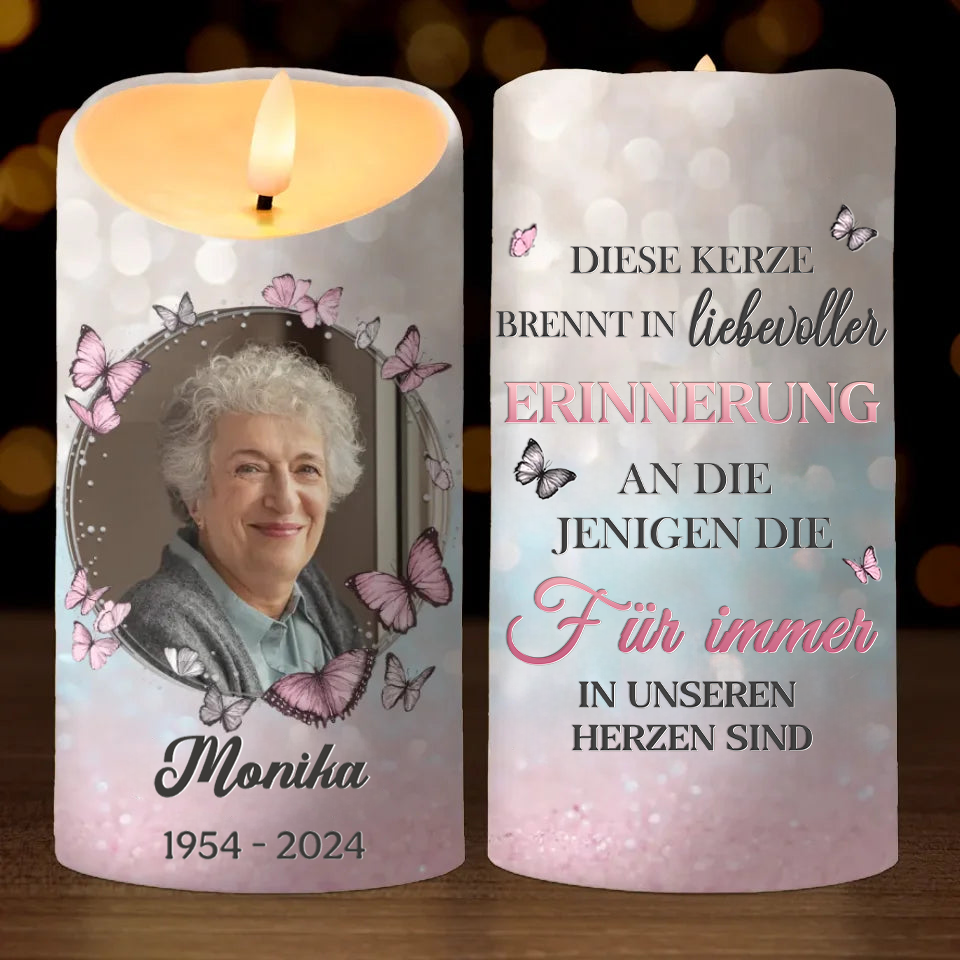 In liebevoller Erinnerung an...- Personalisierte Trauerkerze LED-Kerze mit Foto