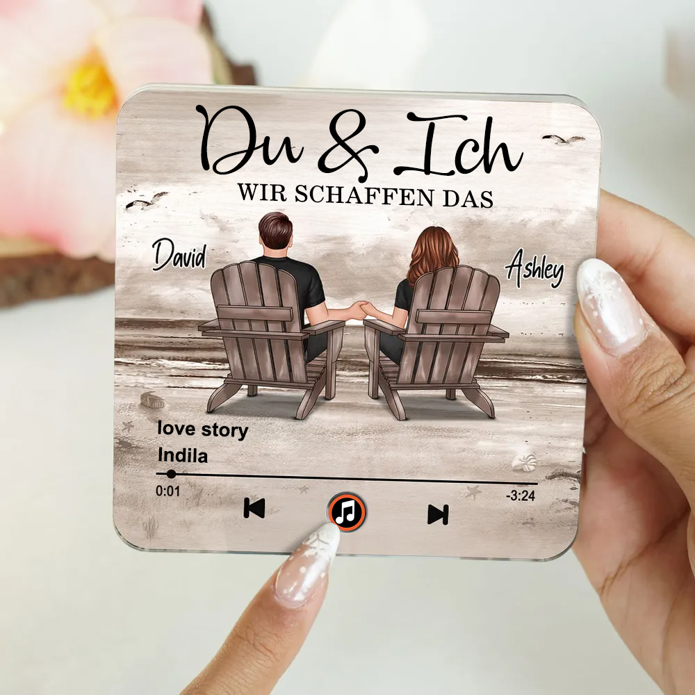 Musik-Kühlschrankmagnet mit 2 Figuren, Namen und Spruch Geschenk für Paar