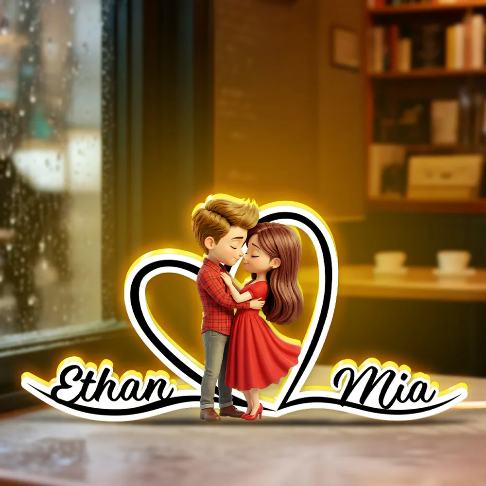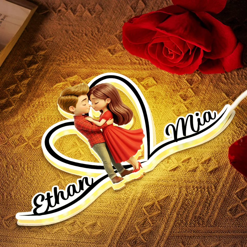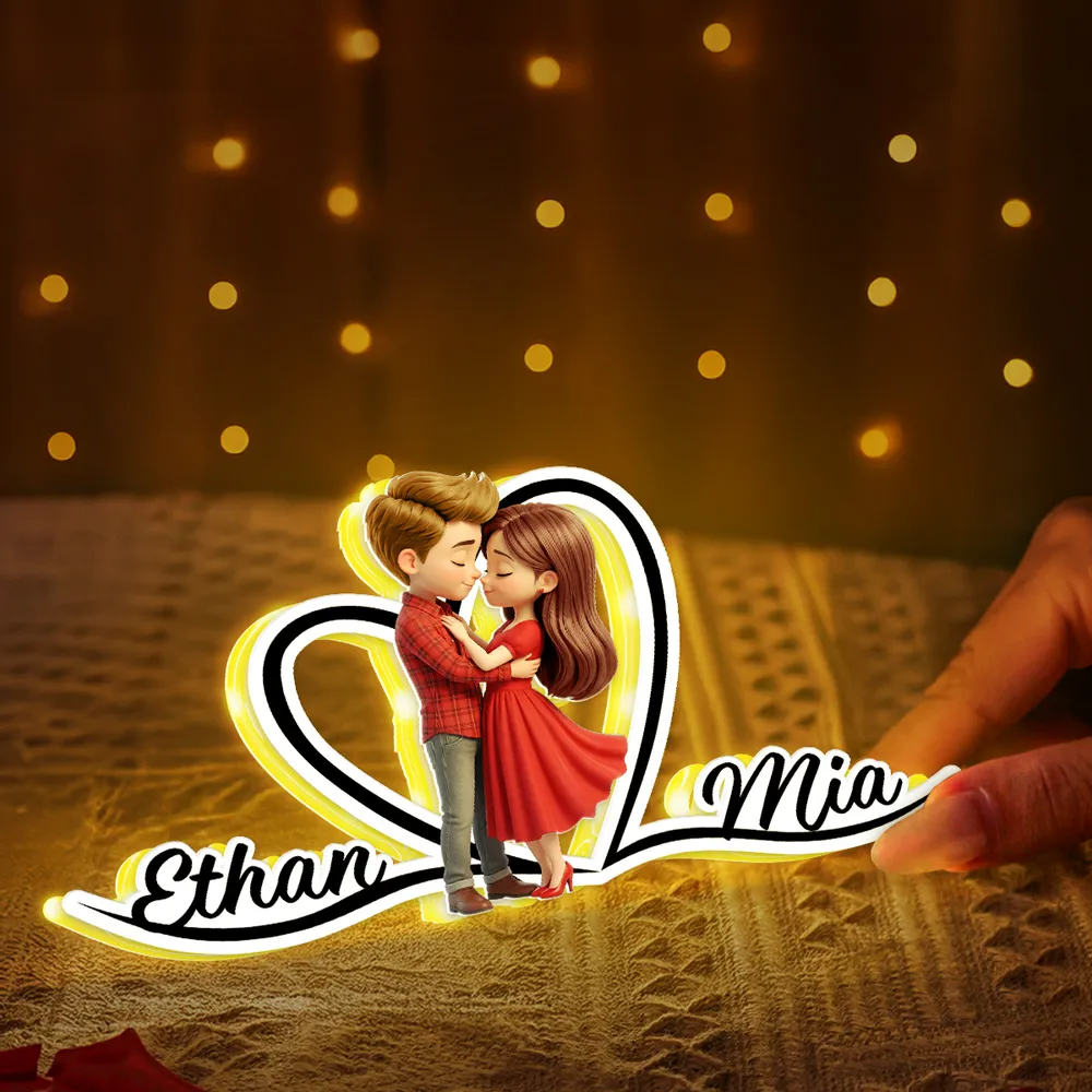 Paar in Rot Personalisieirte LED-Lichtbox mit Namen