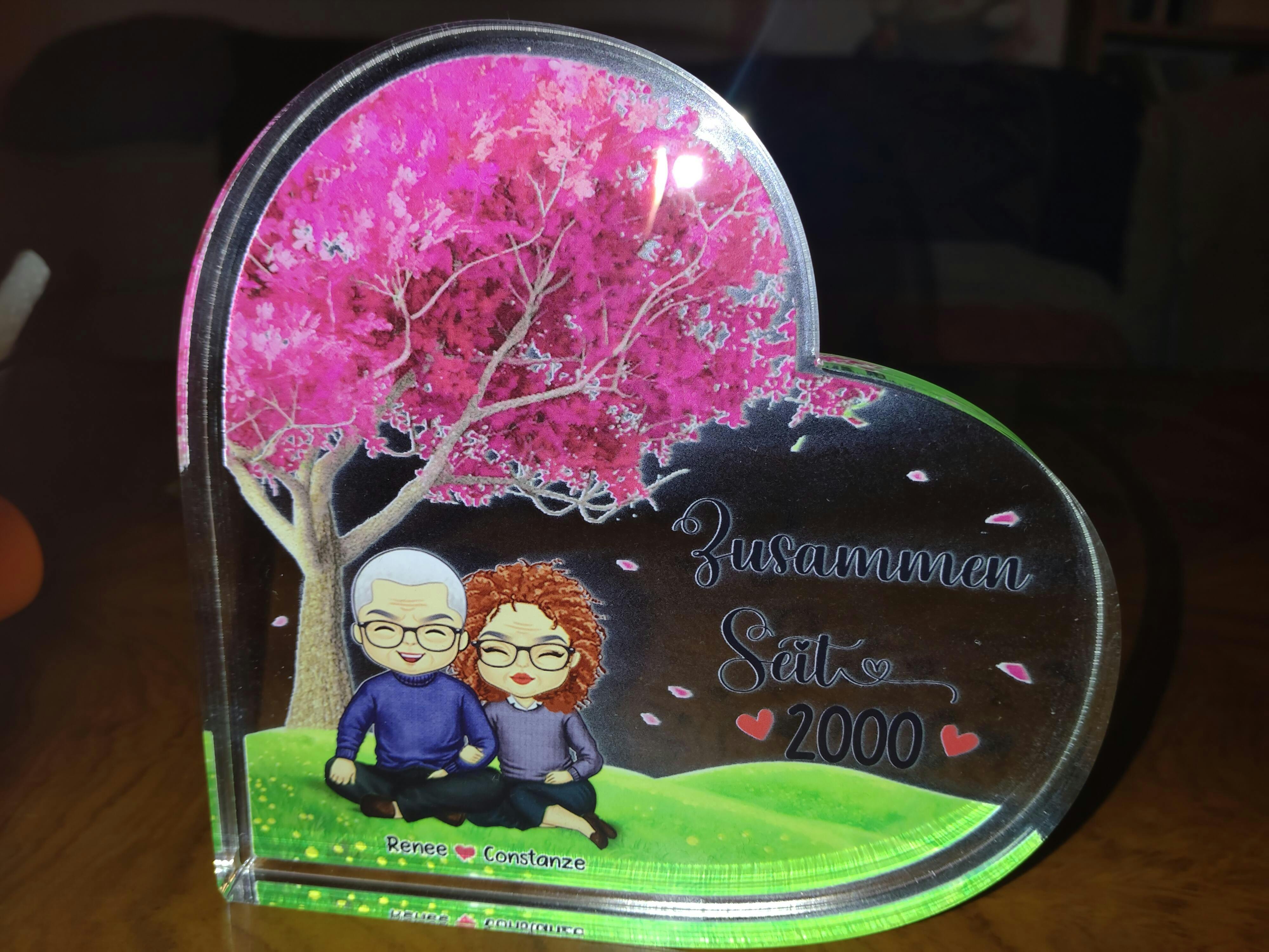 - Einzigartiges Liebesdenkmal: Unser individuell gestaltetes Herz aus Acryl ist nicht nur eine schöne Dekoration, sondern auch ein einzigartiges Denkmal für Deine Liebe. Die romantische Szene unter dem Baum, kombiniert mit anpassbaren Details, macht es zu einem ganz persönlichen Ausdruck Eurer gemeinsamen Geschichte.
