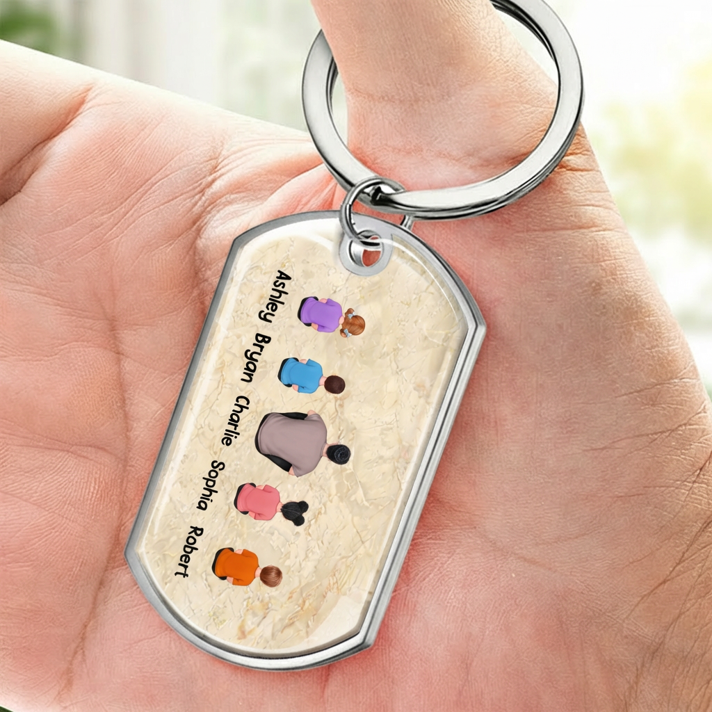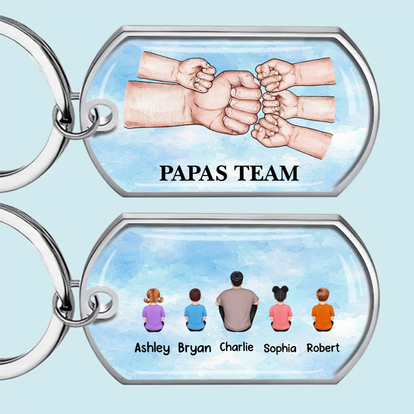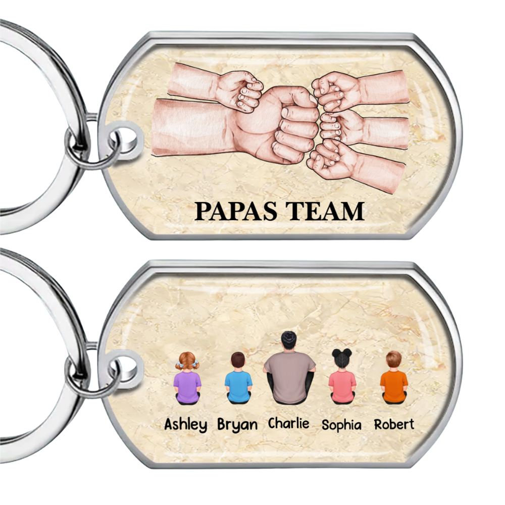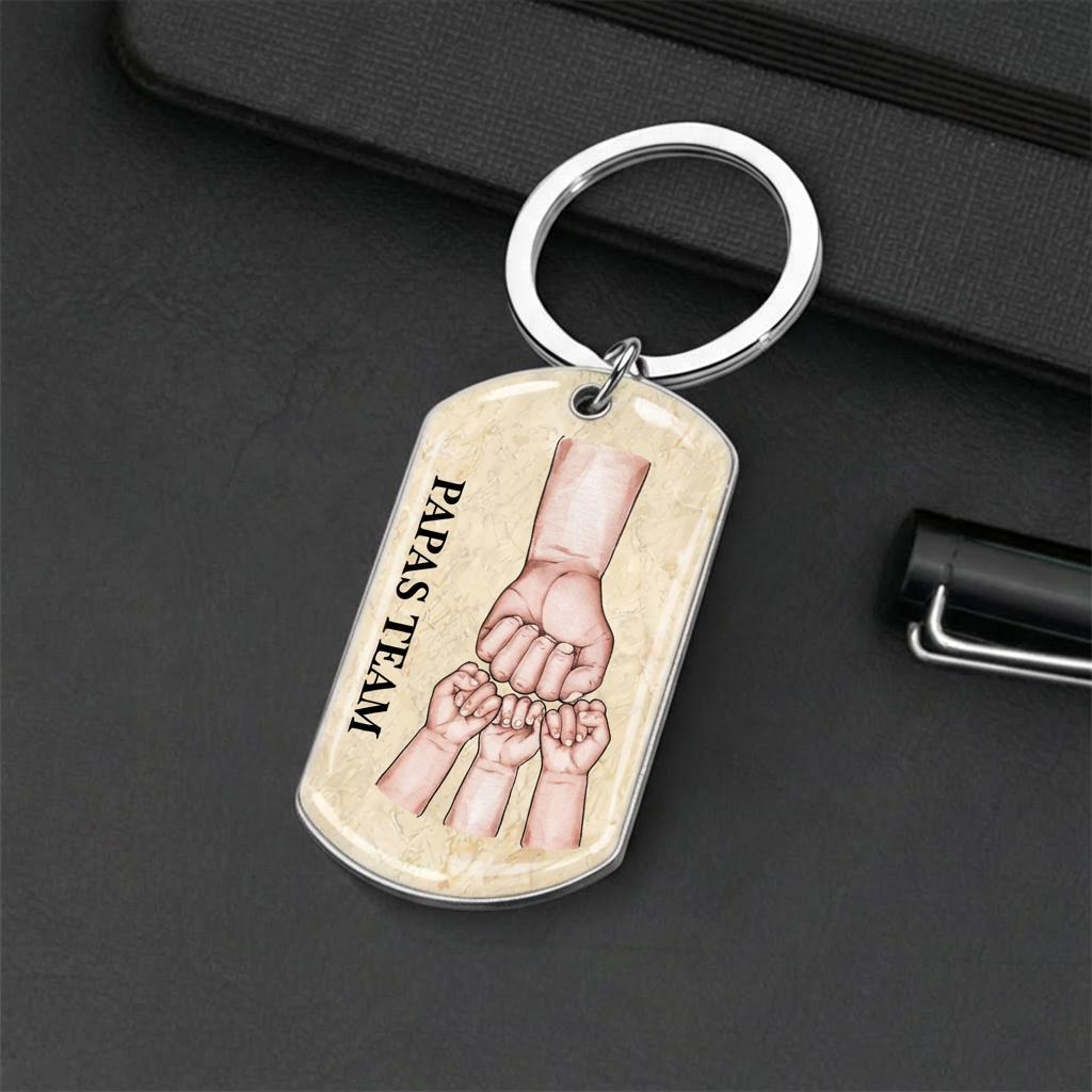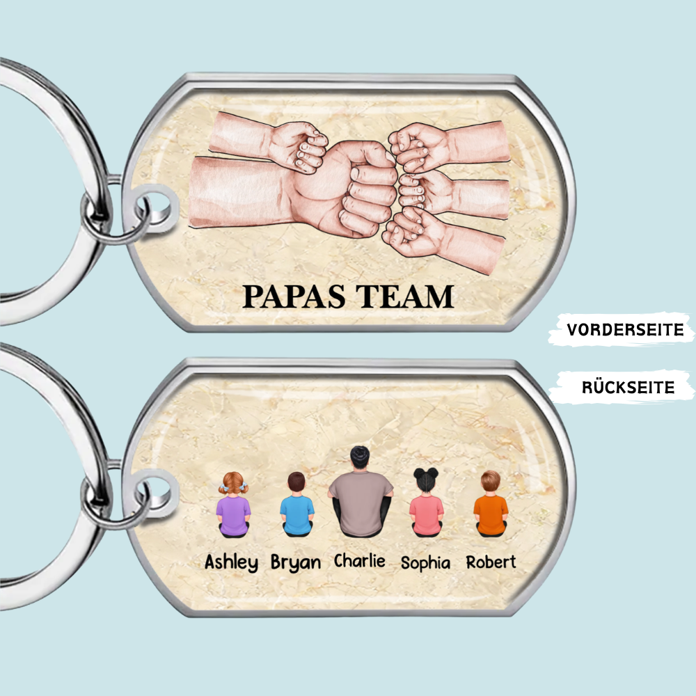 Papa und Kinder Fausstoß-Edelstahl-Schlüsselanhänger mit Expoxidharz