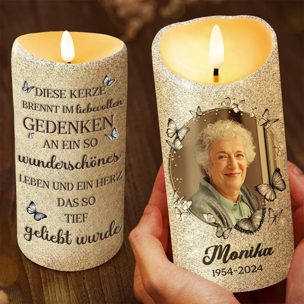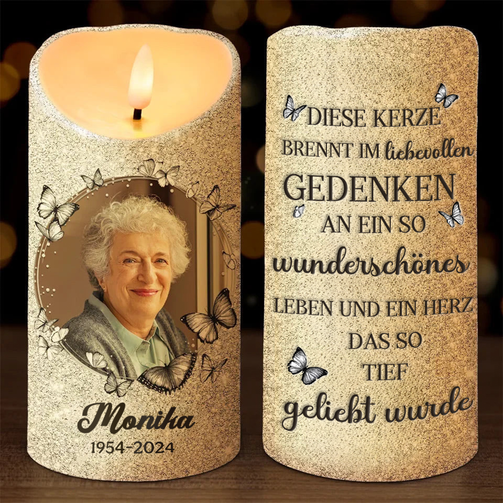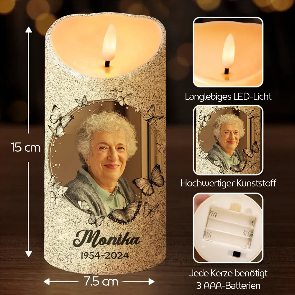 Personalisierte LED-Kerze Trauerkerze mit Schmetterlingen