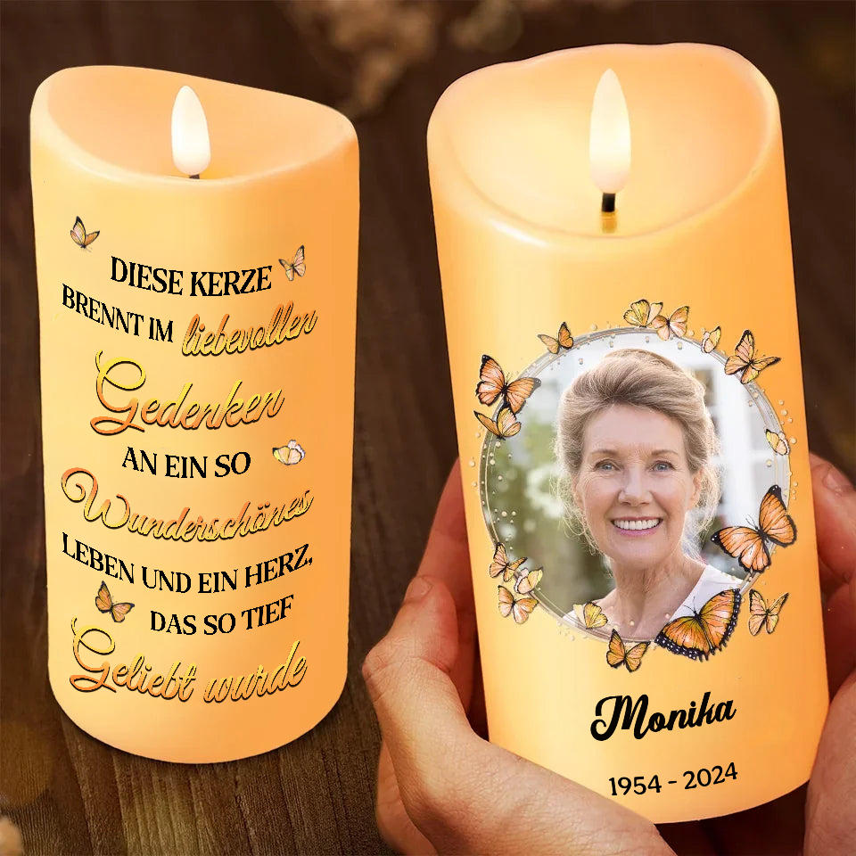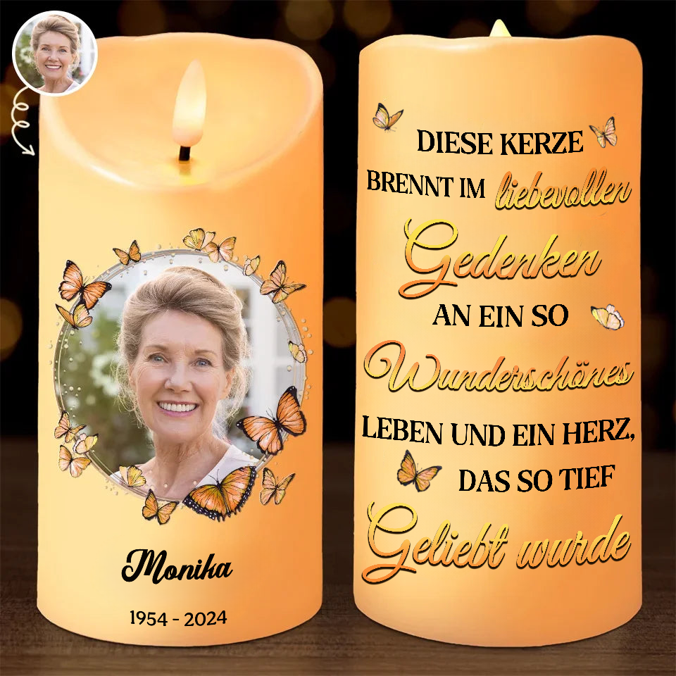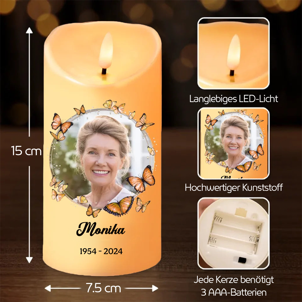 Personalisierte Trauerkerze mit Schmetterlingen LED-Kerze mit Foto