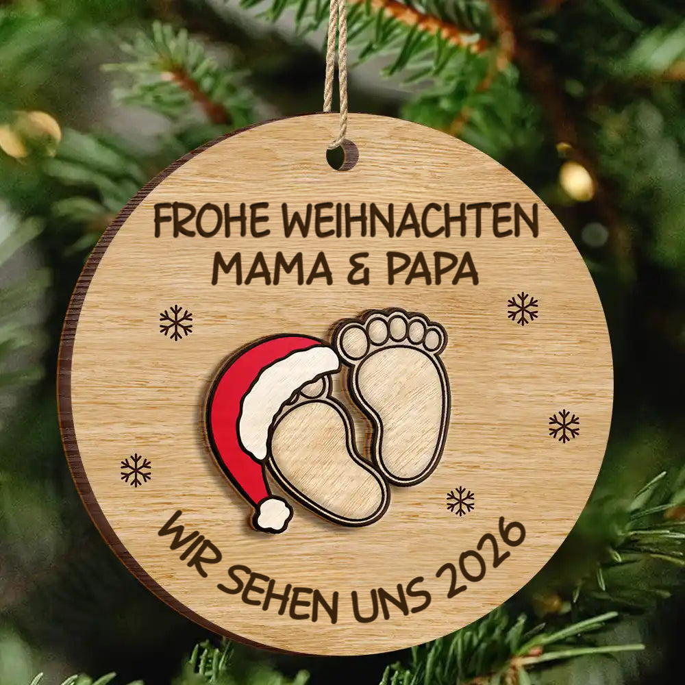 Personalisierter 2-lagiger Holzanhänger „Baby erwartet – wir sehen uns in 2026“ – Schwangerschaftsankündigung