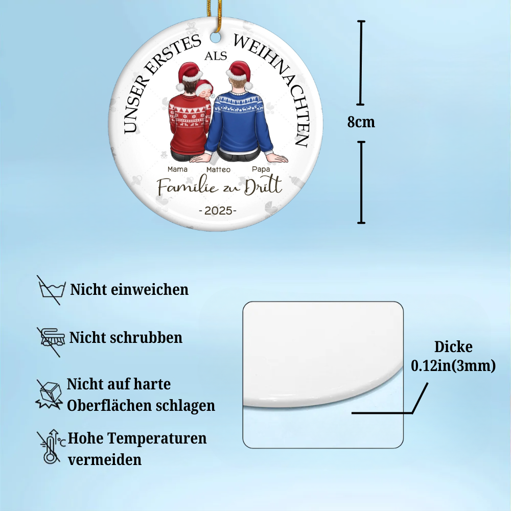 Personalisierter Keramik-Anhänger „Unser erstes Weihnachten zu dritt“
